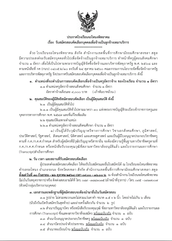ประกาศโรงเรียนจะโหนงพิทยาคม เรื่อง รับสมัครสอบคัดเลือกบุคคลเพื่อจ้างเป็นลูกจ้างเหมาบริการ