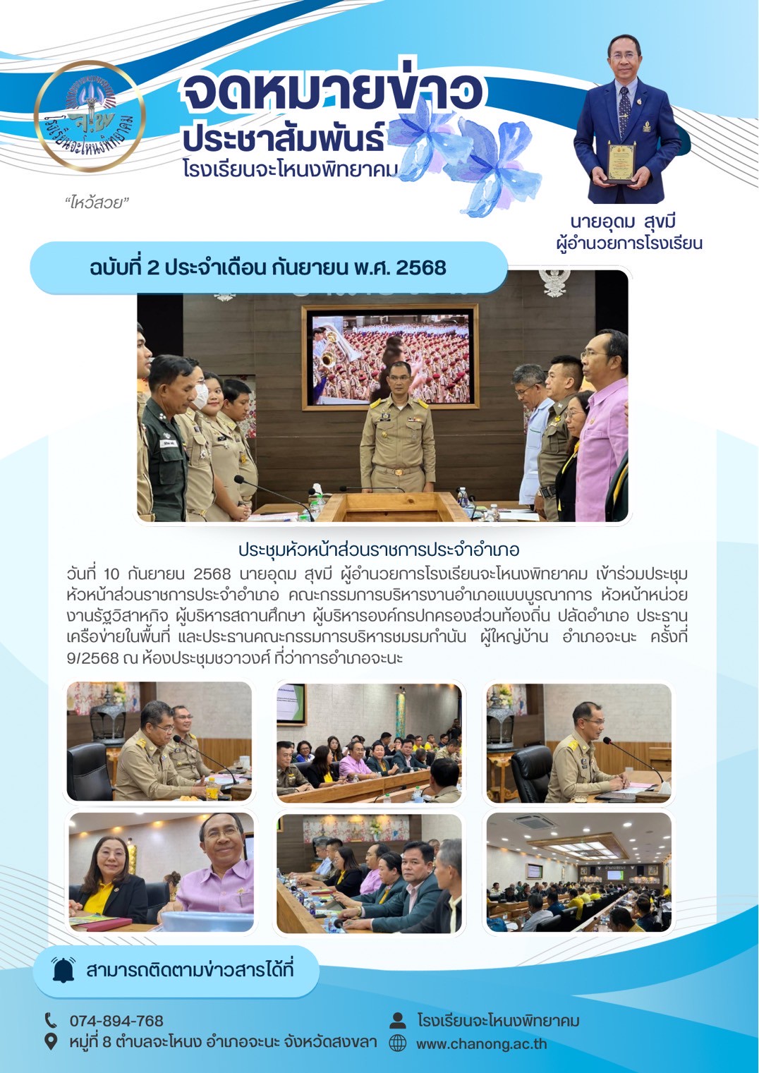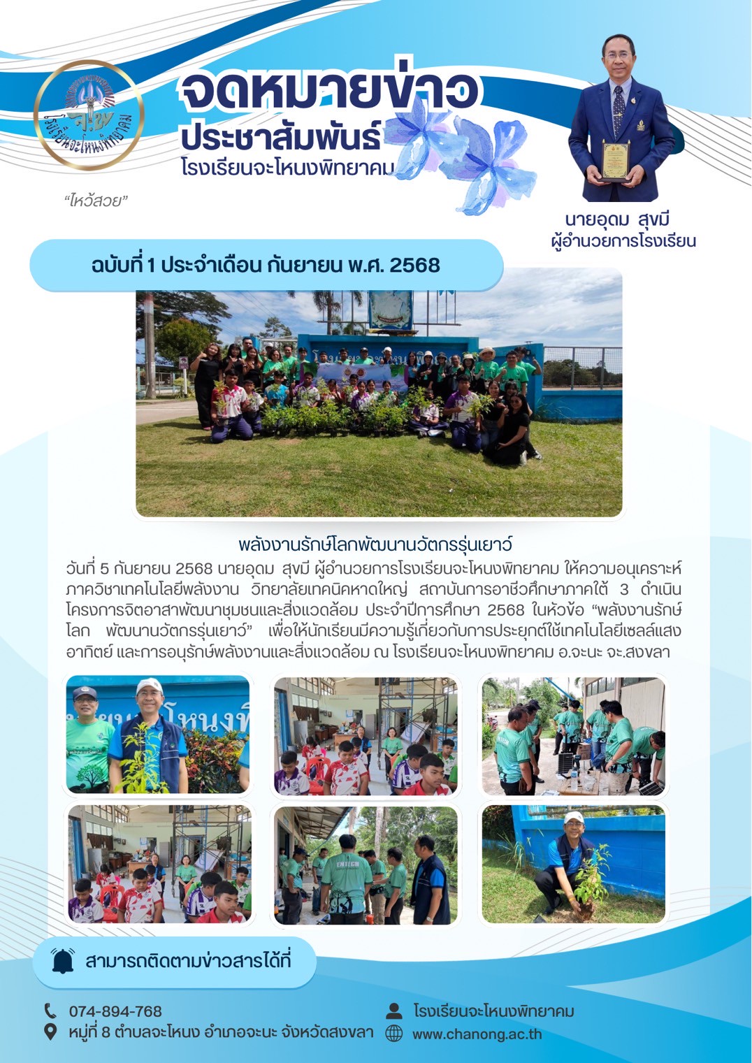 ยินดีต้อนรับเข้าสู่เว็บไซต์ โรงเรียนจะโหนงพิทยาคม