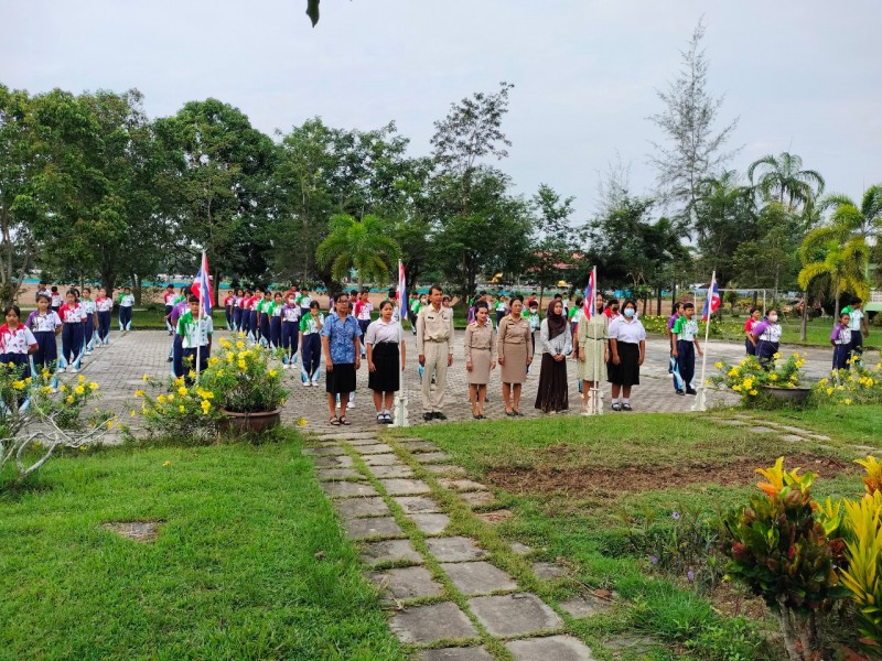 วันพฤหัสบดี 28 กันยายน 2566 นายอุดม สุขมี ผู้อำนวยการโรงเรียนจะโหนงพิทยาคม ได้มอบหมายรองผู้อำนวยการ นางวรดา โกไศยกานนท์ พร้อมด้วยคณะครูและนักเรียนร่วมพิธีเคารพธงชาติไทยและร้องเพลงชาติไทย เนื่องในวันพระราชทานธงไทย ณ ลานหน้าเสาธง โรงเรียนจะโหนงพิทยาคม