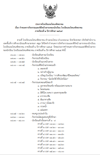 ตารางเรียน ภาคเรียนที่ 1/2565